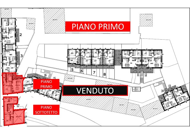 Disponibilità di abitazioni di ampia metratura a piano terra con giardini privati, villette su due livelli con giardino e appartamenti su due livelli al piano primo con sottotetto.